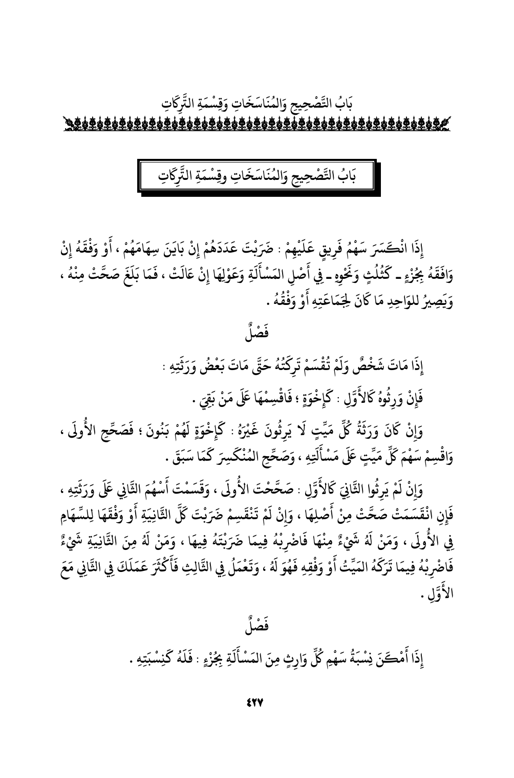 باب التصحيح والمناسخات وقسمة التركات