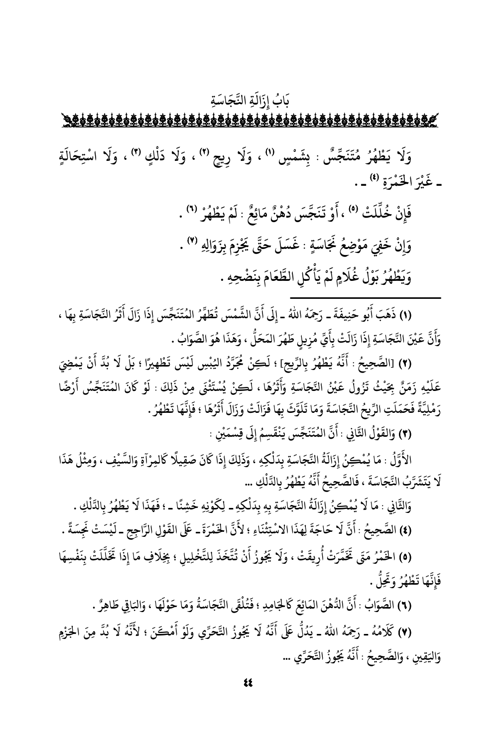 (¬1) ذهب أبو حنيفة - رحمه الله - إلى أن الشمس تطهر المتنجس إذا زال أثر النجاسة بها، وأن عين النجاسة إذا زالت بأي مزيلٍ طهر المحل، وهذا هو الصواب.