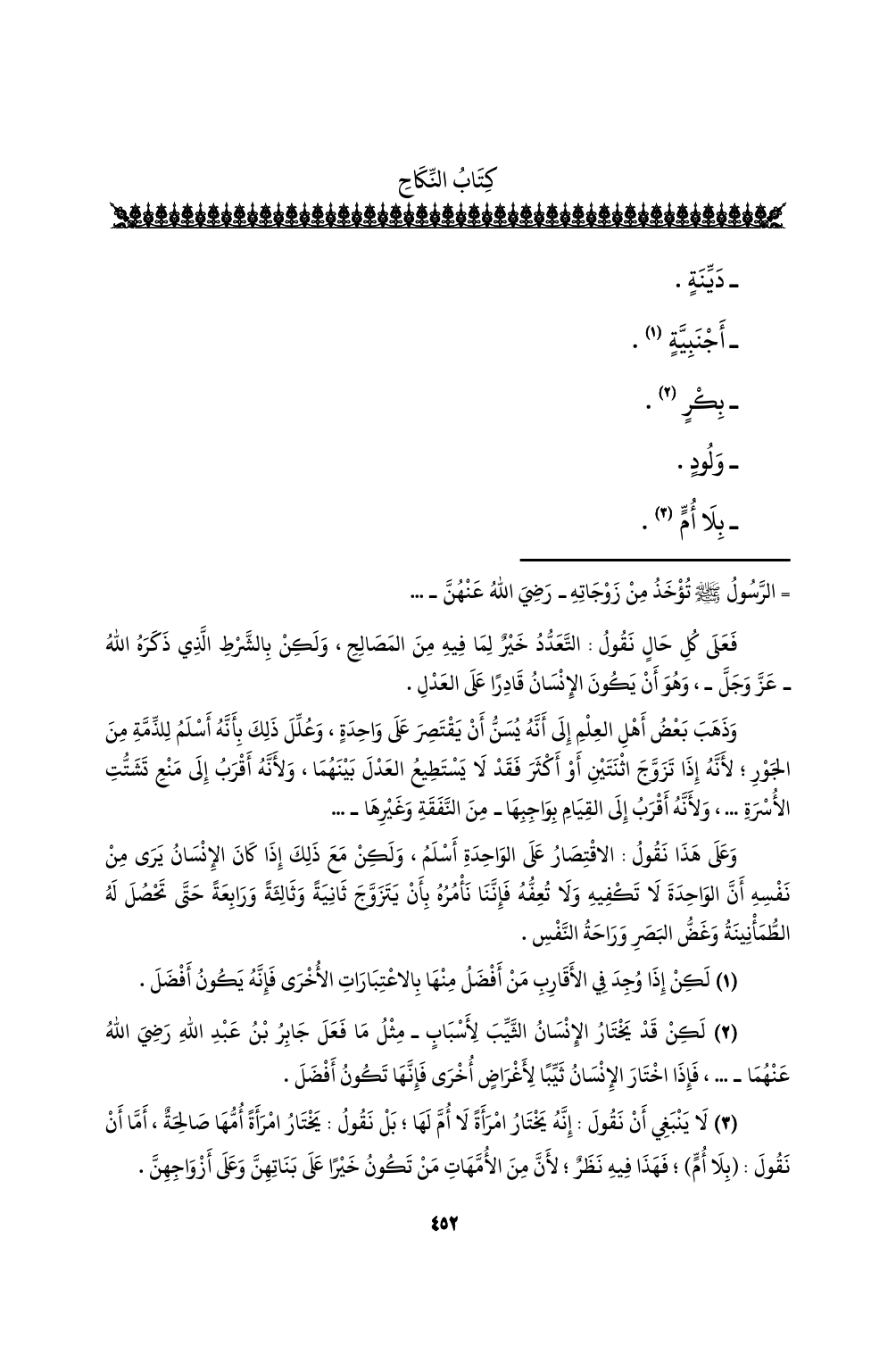 (¬3) لا ينبغي أن نقول: إنه يختار امرأةً لا أم لها؛ بل نقول: يختار امرأةً أمها صالحةٌ، أما أن نقول: (بلا أم)؛ فهذا فيه نظرٌ؛ لأن من الأمهات من تكون خيرًا على بناتهن وعلى أزواجهن.