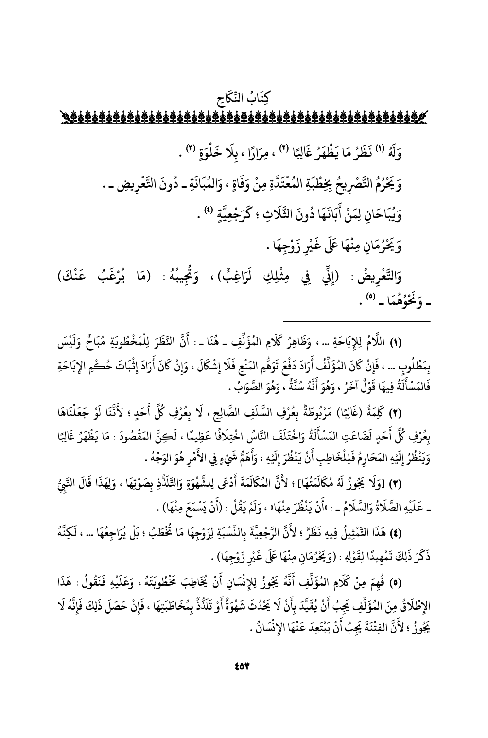 (¬3) [ولا يجوز له مكالمتها]؛ لأن المكالمة أدعى للشهوة والتلذذ بصوتها، ولهذا قال النبي - عليه الصلاة والسلام -: «أن ينظر منها»، ولم يقل: (أن يسمع منها).