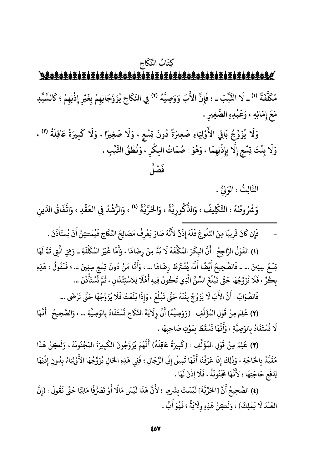 (¬3) علم من قول المؤلف: (كبيرةً عاقلةً) أنهم يزوجون الكبيرة المجنونة، ولكن هذا مقيدٌ بالحاجة، وذلك إذا عرفنا أنها تميل إلى الرجال؛ ففي هذه الحال يزوجها الأولياء بدون إذنها لدفع حاجتها؛ لأنها مجنونةٌ، فلا إذن لها.