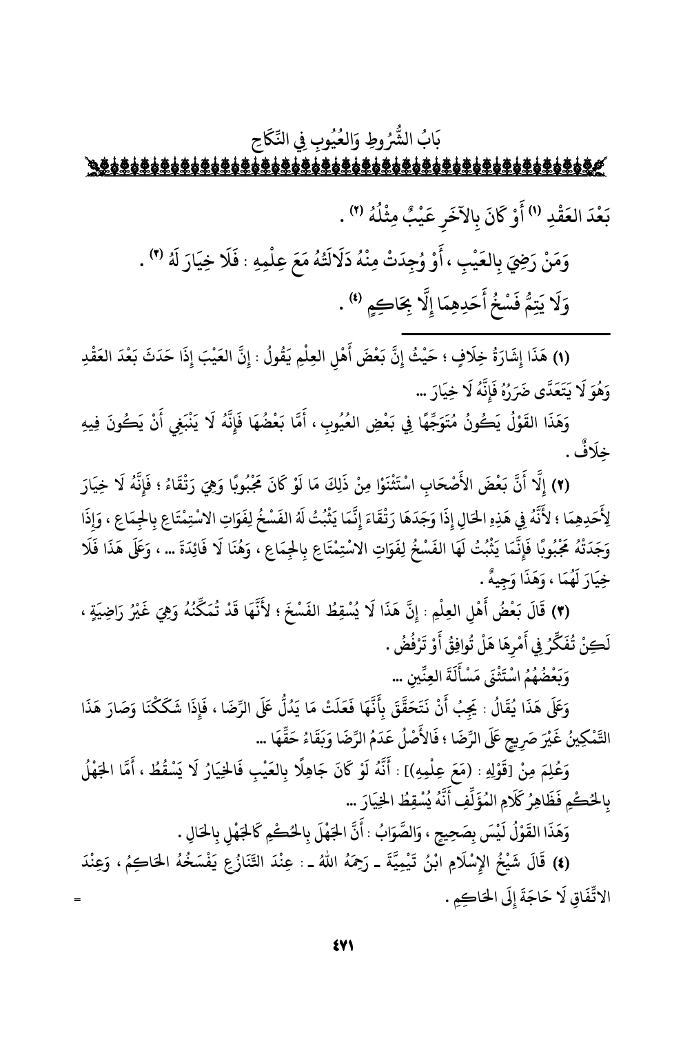 (¬4) قال شيخ الإسلام ابن تيمية - رحمه الله -: عند التنازع يفسخه الحاكم، وعند الاتفاق لا حاجة إلى الحاكم. وما قاله الشيخ - رحمه الله - هو الحق ... ، وهذا القول في وقتنا يزداد قوةً، والسبب: صعوبة الوصول إلى المحاكم.