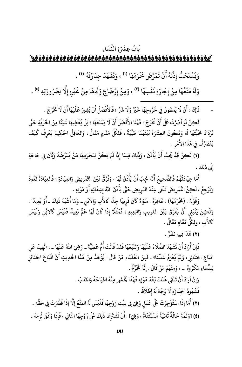 (¬1) لكن قد يجب أن يأذن، وذلك فيما إذا لم يكن لمحرمها من يمرضه وكان في حاجةٍ إلى ذلك.