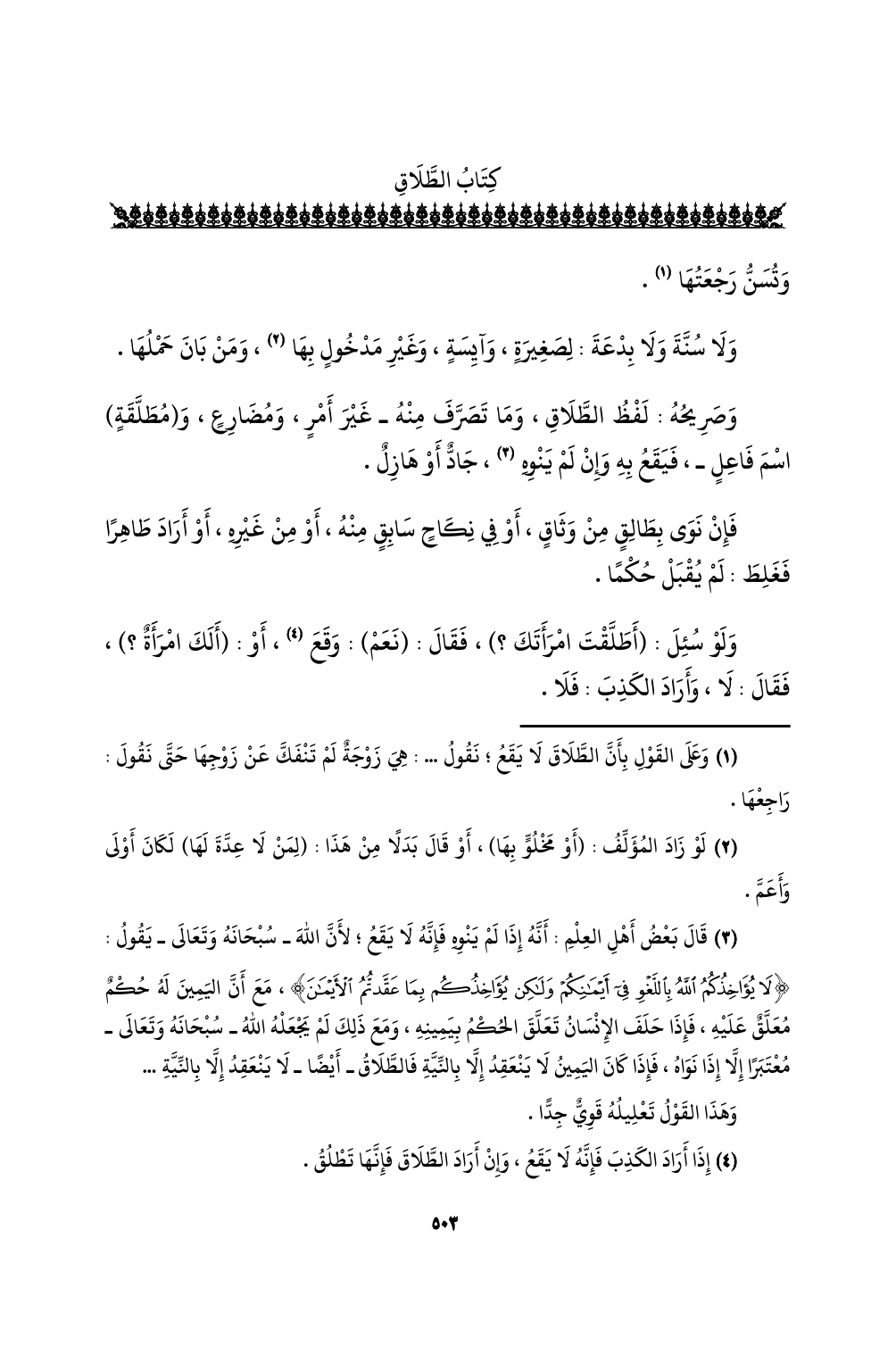 (¬3) قال بعض أهل العلم: أنه إذا لم ينوه فإنه لا يقع؛ لأن الله - سبحانه وتعالى - يقول: {لَا يُؤَاخِذُكُمُ اللَّهُ بِاللَّغْوِ فِي أَيْمَانِكُمْ وَلَكِنْ يُؤَاخِذُكُمْ بِمَا عَقَّدْتُمُ الْأَيْمَانَ}، مع أن اليمين له حكمٌ معلقٌ عليه، فإذا حلف الإنسان تعلق الحكم بيمينه، ومع ذلك لم يجعله الله - سبحانه وتعالى - معتبرًا إلا إذا نواه، فإذا كان اليمين لا ينعقد إلا بالنية فالطلاق - أيضًا - لا ينعقد إلا بالنية ...