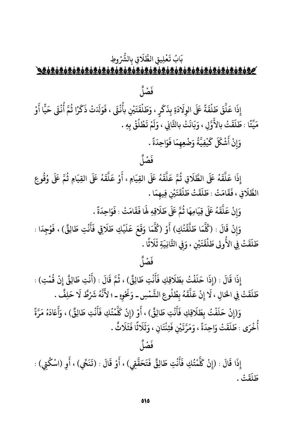 إذا قال: (إذا حلفت بطلاقك فأنت طالقٌ)، ثم قال: (أنت طالقٌ إن قمت): طلقت في الحال، لا إن علقه بطلوع الشمس - ونحوه -؛ لأنه شرطٌ لا حلفٌ.