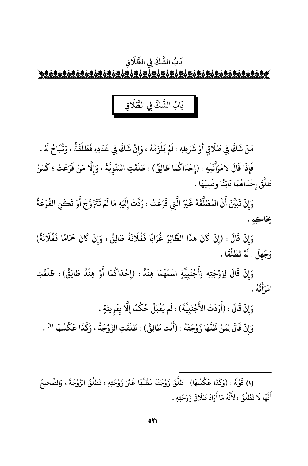 (¬1) قوله: (وكذا عكسها): طلق زوجته يظنها غير زوجته؛ تطلق الزوجة، والصحيح: أنها لا تطلق؛ لأنه ما أراد طلاق زوجته.