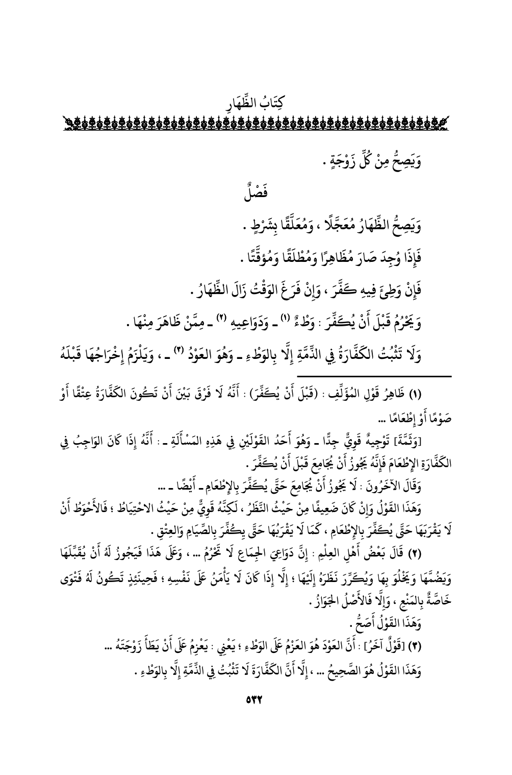 وهذا القول هو الصحيح ... ، إلا أن الكفارة لا تثبت في الذمة إلا بالوطء.