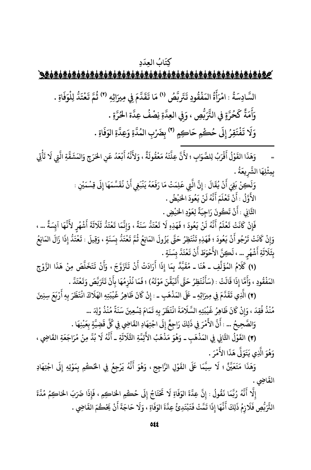 (¬2) الذي تقدم في ميراثه - على المذهب -: إن كان ظاهر غيبته الهلاك انتظر به أربع سنين منذ فقد، وإن كان ظاهر غيبته السلامة انتظر به تمام تسعين سنةً منذ ولد ...