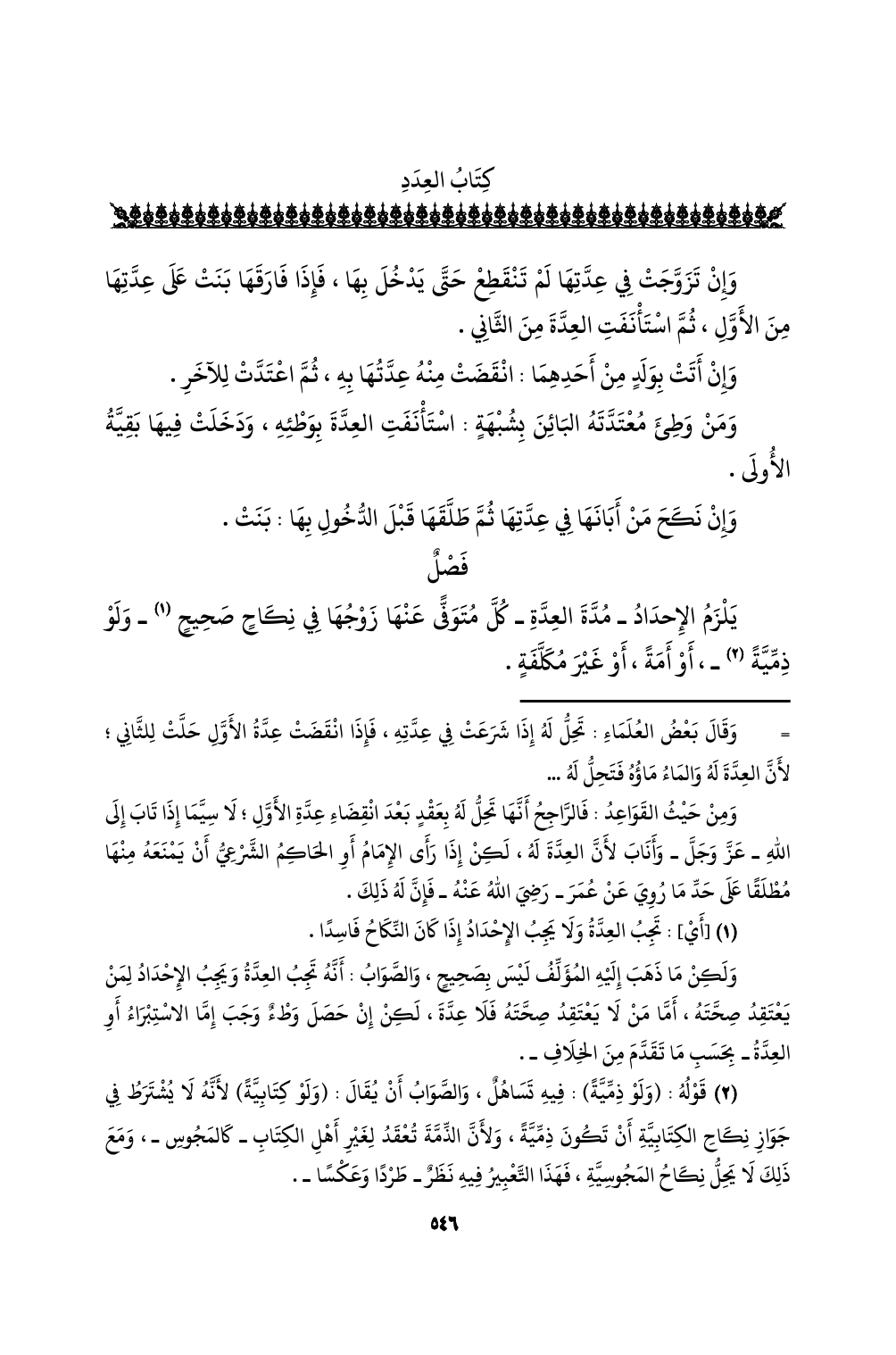 يلزم الإحداد - مدة العدة - كل متوفى عنها زوجها في نكاحٍ صحيحٍ (¬1) - ولو ذميةً (¬2) -، أو أمةً، أو غير مكلفةٍ.