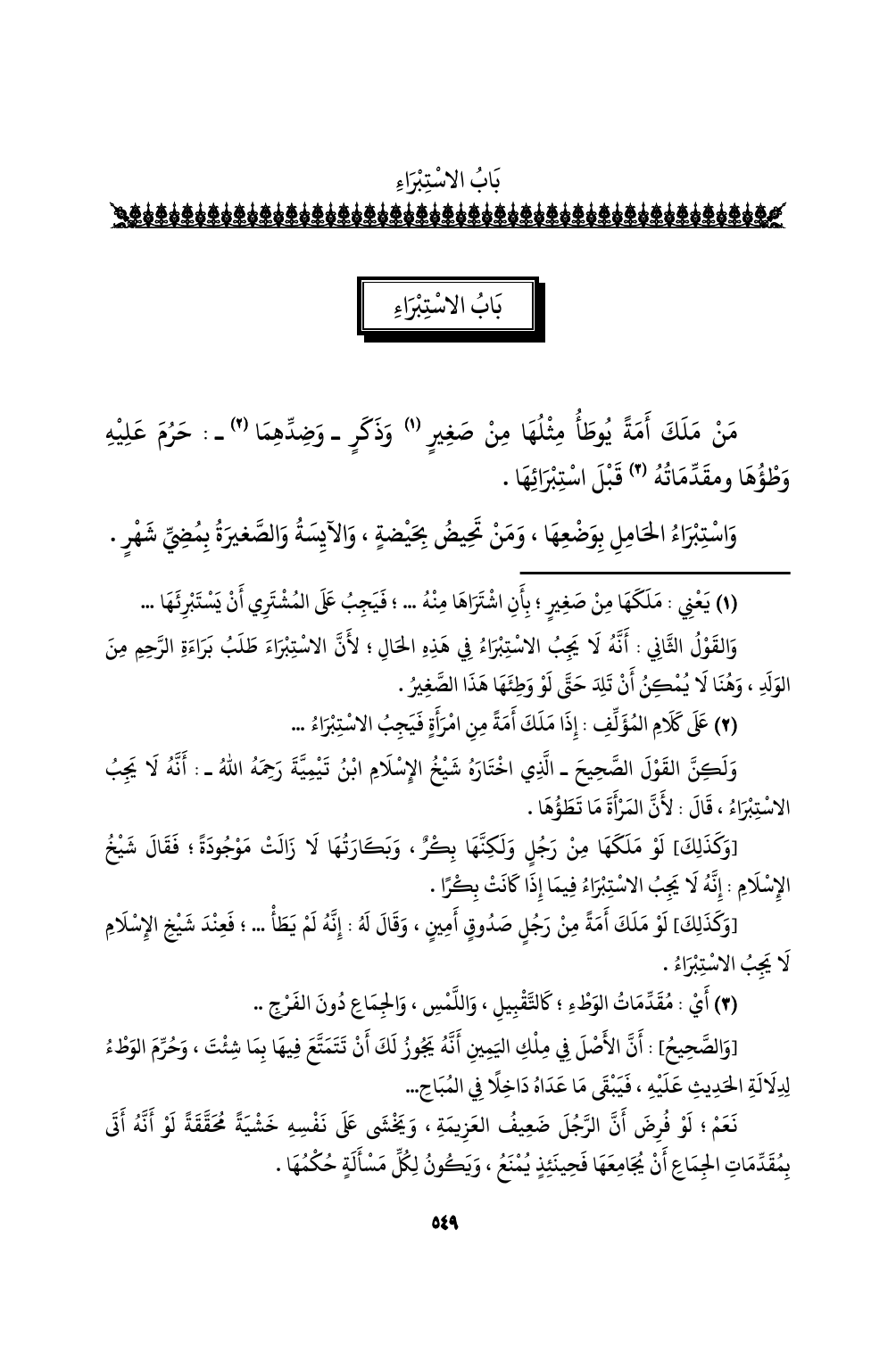(¬1) يعني: ملكها من صغيرٍ؛ بأن اشتراها منه ... ؛ فيجب على المشتري أن يستبرئها ...