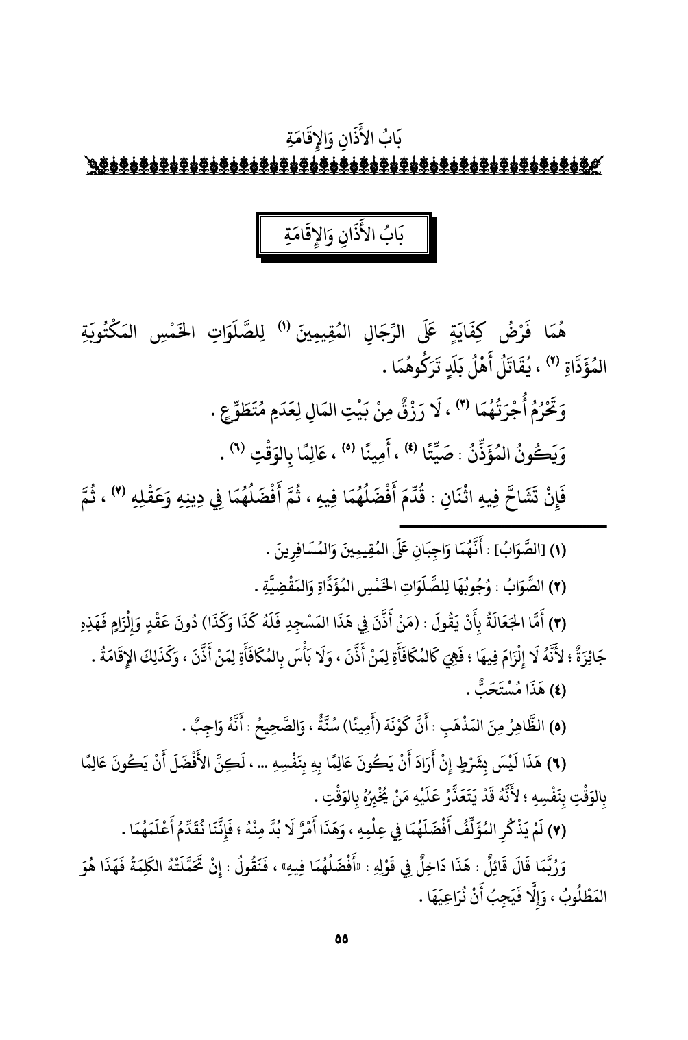(¬6) هذا ليس بشرطٍ إن أراد أن يكون عالمًا به بنفسه ... ، لكن الأفضل أن يكون عالمًا بالوقت بنفسه؛ لأنه قد يتعذر عليه من يخبره بالوقت.