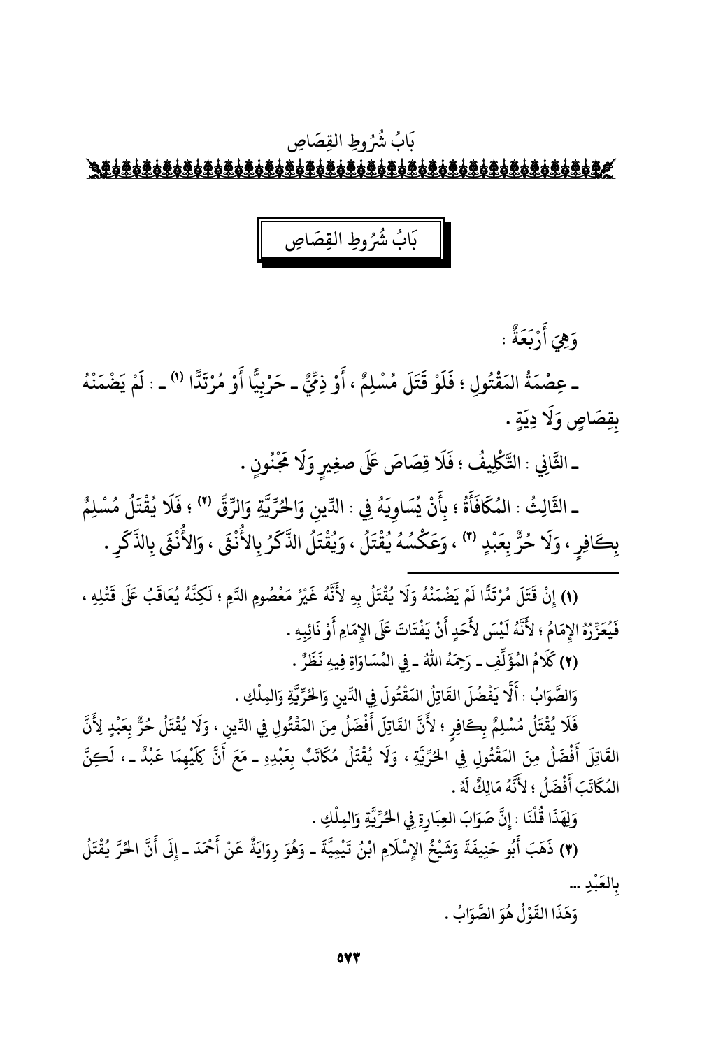 والصواب: ألا يفضل القاتل المقتول في الدين والحرية والملك.