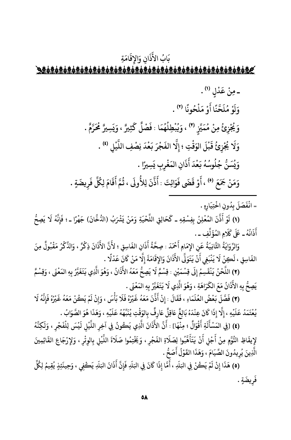 (¬2) اللحن ينقسم إلى قسمين: قسمٌ لا يصح معه الأذان، وهو الذي يتغير به المعنى، وقسمٌ يصح به الأذان مع الكراهة، وهو الذي لا يتغير به المعنى.