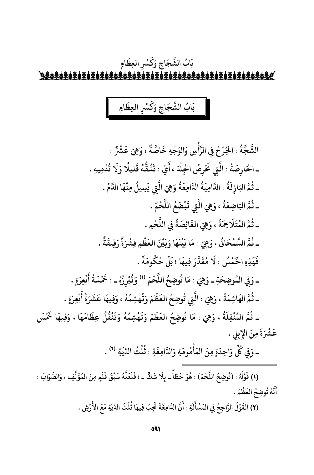 باب الشجاج وكسر العظام