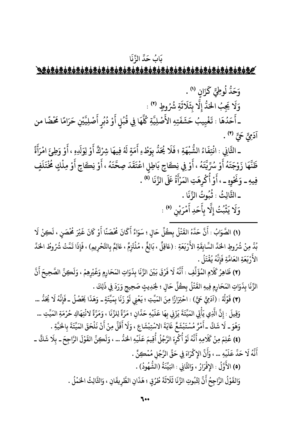 (¬4) علم من كلامه أنه لو أكره الرجل أقيم عليه الحد ... ، ولكن القول الراجح - بلا شك - أنه لا حد عليه ... ، وأن الإكراه في حق الرجل ممكنٌ.