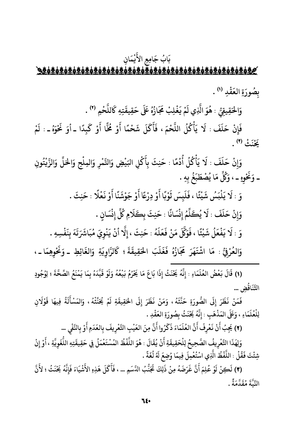 (¬3) لكن لو علم أن غرضه من ذلك تجنب الدسم ... ، فأكل هذه الأشياء فإنه يحنث؛ لأن النية مقدمةٌ.