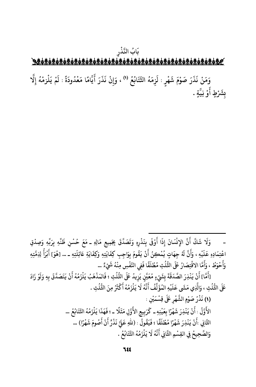 ومن نذر صوم شهرٍ: لزمه التتابع (¬1)، وإن نذر أيامًا معدودةً: لم يلزمه إلا بشرطٍ أو نيةٍ.