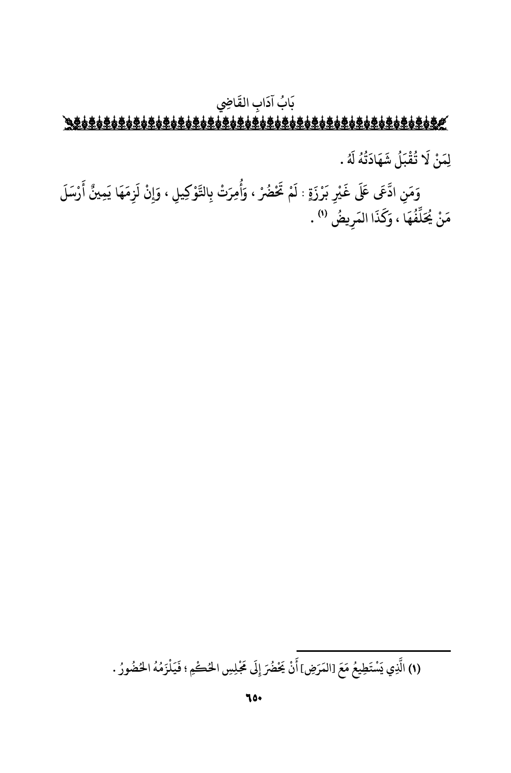 (¬1) الذي يستطيع مع [المرض] أن يحضر إلى مجلس الحكم؛ فيلزمه الحضور.