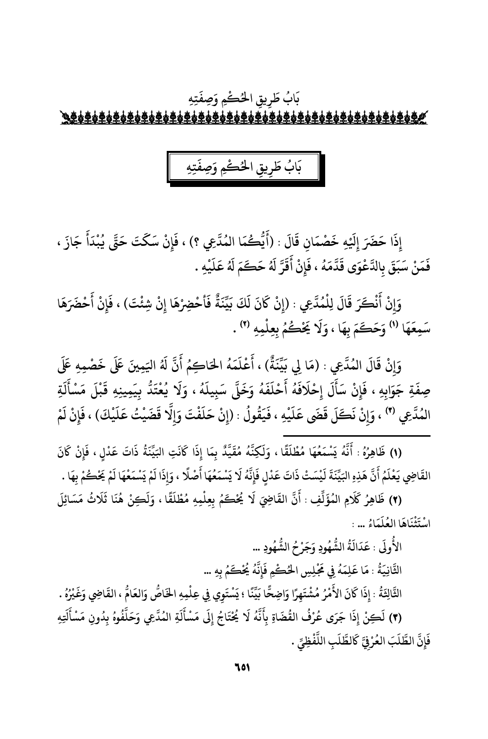 الثانية: ما علمه في مجلس الحكم فإنه يحكم به ...