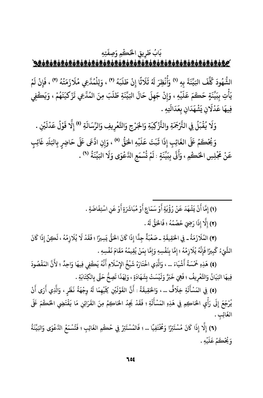 (¬1) إما أن يشهد عن رؤيةٍ أو سماعٍ أو مباشرةٍ أو عن استفاضةٍ.