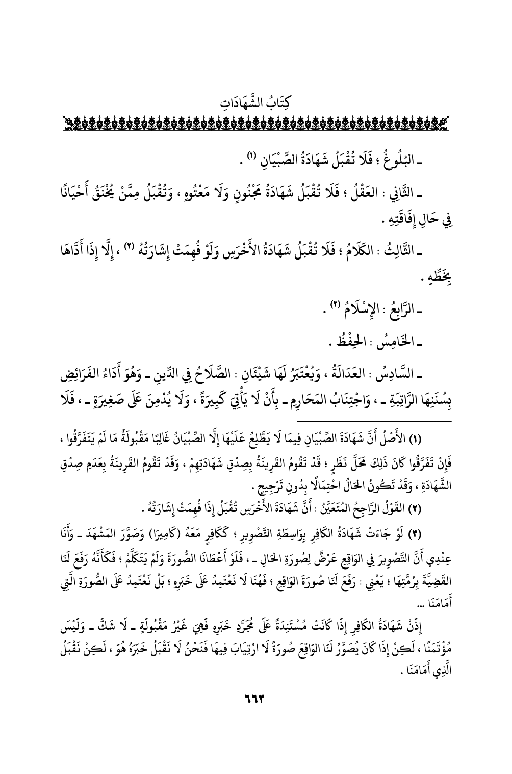 - البلوغ؛ فلا تقبل شهادة الصبيان (¬1).