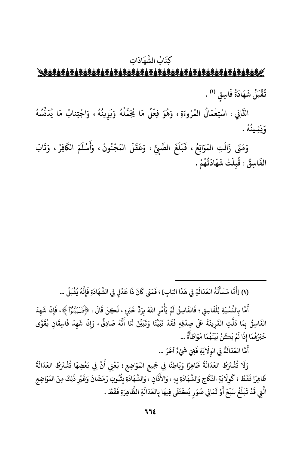 (¬1) [أما مسألة العدالة في هذا الباب]؛ فمتى كان ذا عدلٍ في الشهادة فإنه يقبل ...