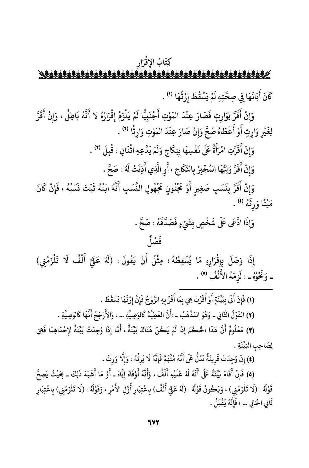 (¬5) فإن أقام بينةً على أنه له عليه ألفٌ، وأنه أوفاه إياه - أو ما أشبه ذلك - بحيث يصح قوله: (لا تلزمني)، ويكون قوله: (له علي ألفٌ) باعتبار أول الأمر، وقوله: (لا تلزمني) باعتبار ثاني الحال ... ؛ فإنه يقبل.