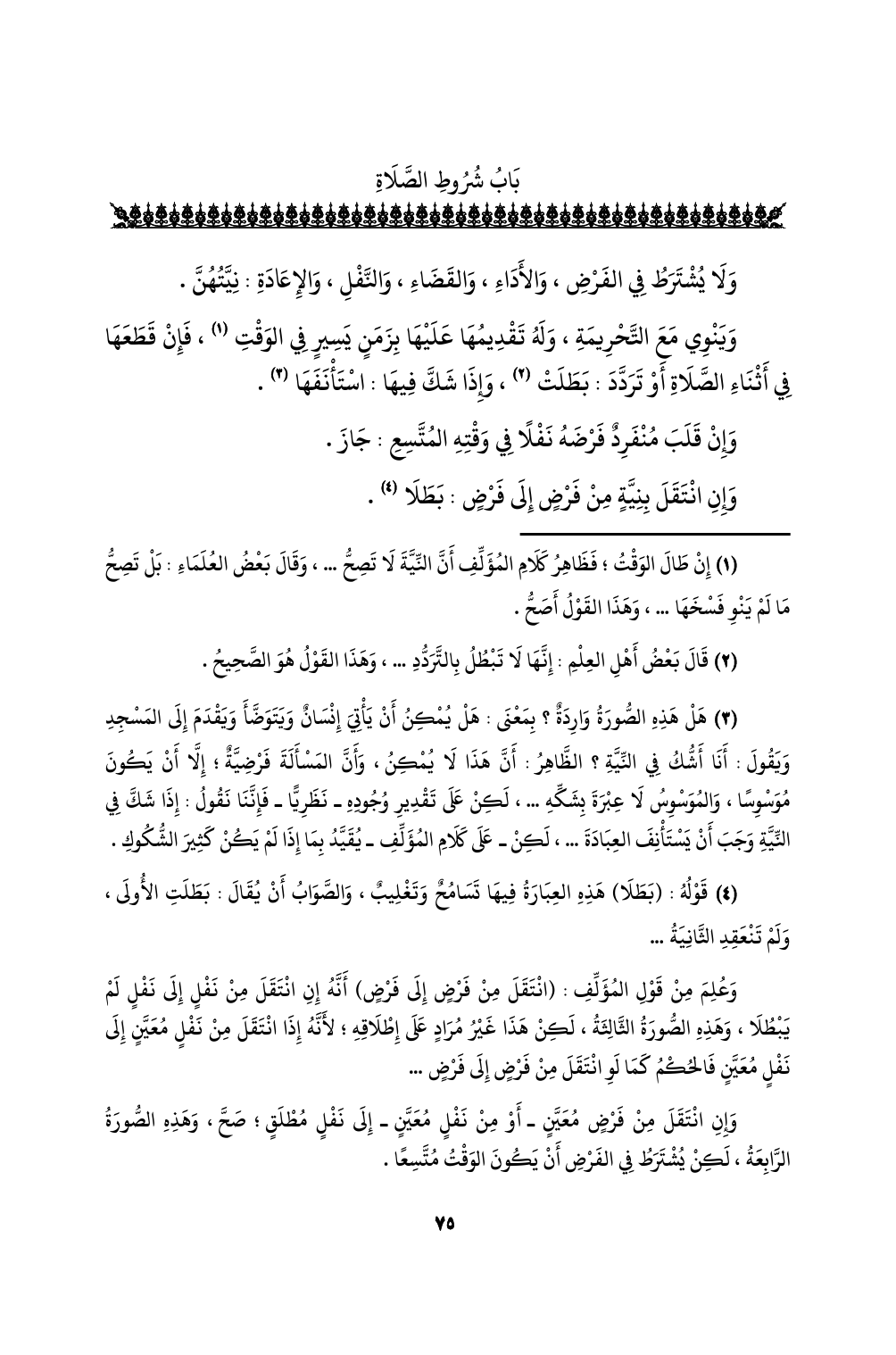 (¬3) هل هذه الصورة واردةٌ؟ بمعنى: هل يمكن أن يأتي إنسانٌ ويتوضأ ويقدم إلى المسجد ويقول: أنا أشك في النية؟ الظاهر: أن هذا لا يمكن، وأن المسألة فرضيةٌ؛ إلا أن يكون موسوسًا، والموسوس لا عبرة بشكه ... ، لكن على تقدير وجوده - نظريا - فإننا نقول: إذا شك في النية وجب أن يستأنف العبادة ... ، لكن - على كلام المؤلف - يقيد بما إذا لم يكن كثير الشكوك.