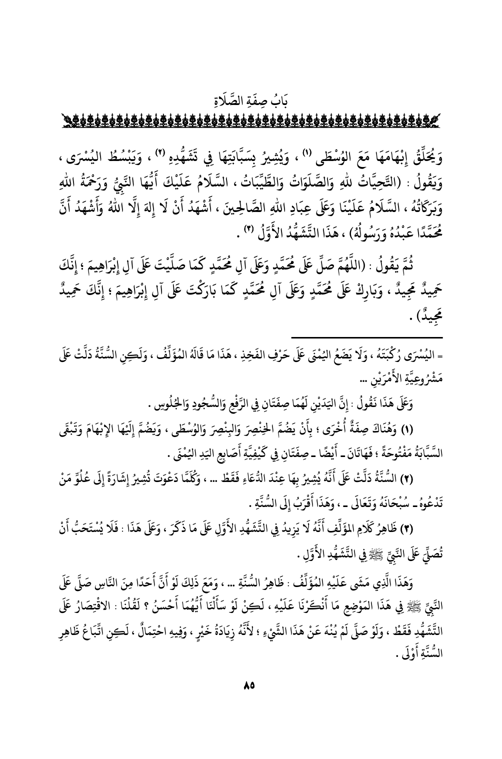 (¬1) وهناك صفةٌ أخرى؛ بأن يضم الخنصر والبنصر والوسطى، ويضم إليها الإبهام وتبقى السبابة مفتوحةً؛ فهاتان - أيضًا - صفتان في كيفية أصابع اليد اليمنى.