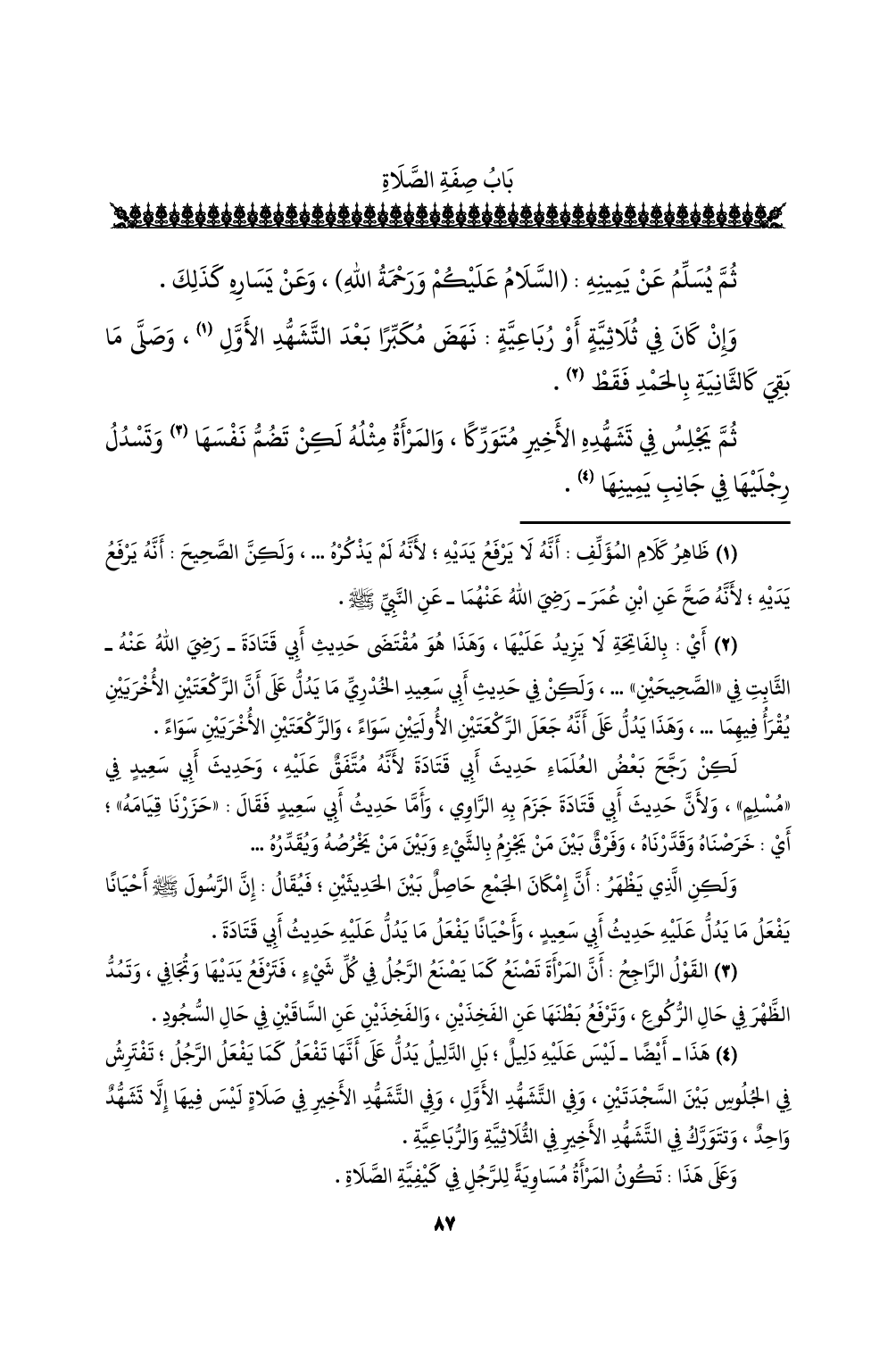 وعلى هذا: تكون المرأة مساويةً للرجل في كيفية الصلاة.
