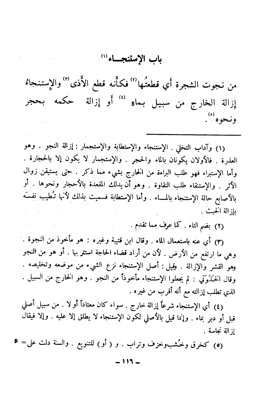 من نجوت الشجرة أي قطعتها (¬2) فكأنه قطع الأذى (¬3) والاستنجاء إزالة الخارج من سبيل بماءٍ (¬4) أو إزالة حكمه بحجر ونحوه (¬5) .