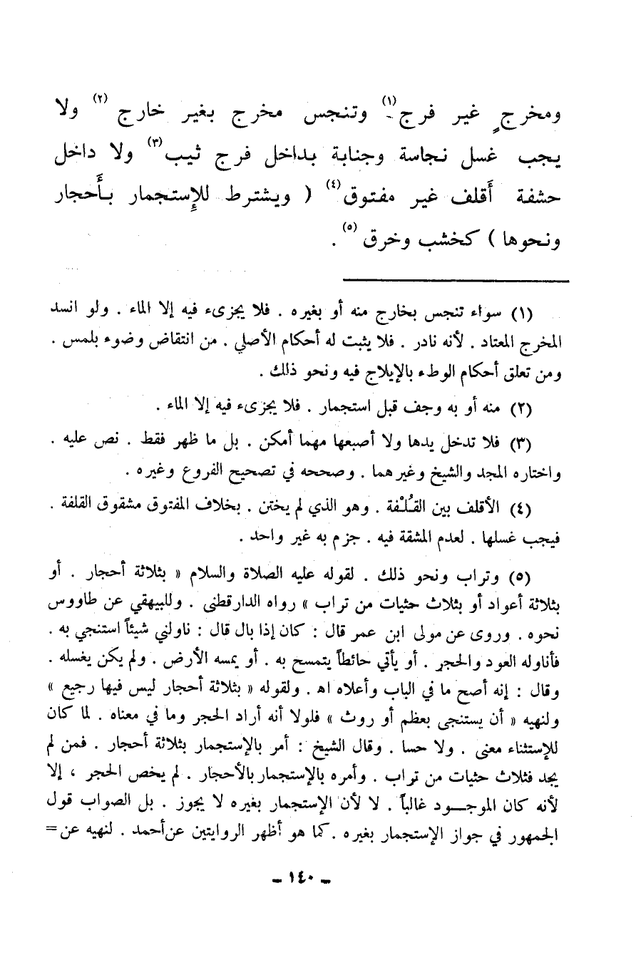 (¬1) سواء تنجس بخارج منه أو بغيره، فلا يجزئ فيه إلا الماء، ولو انسد المخرج المعتاد، لأنه نادر فلا يثبت له أحكام الأصلي، من انتقاض وضوء بلمس، ومن تعلق أحكام الوطء بالإيلاج فيه ونحو ذلك.