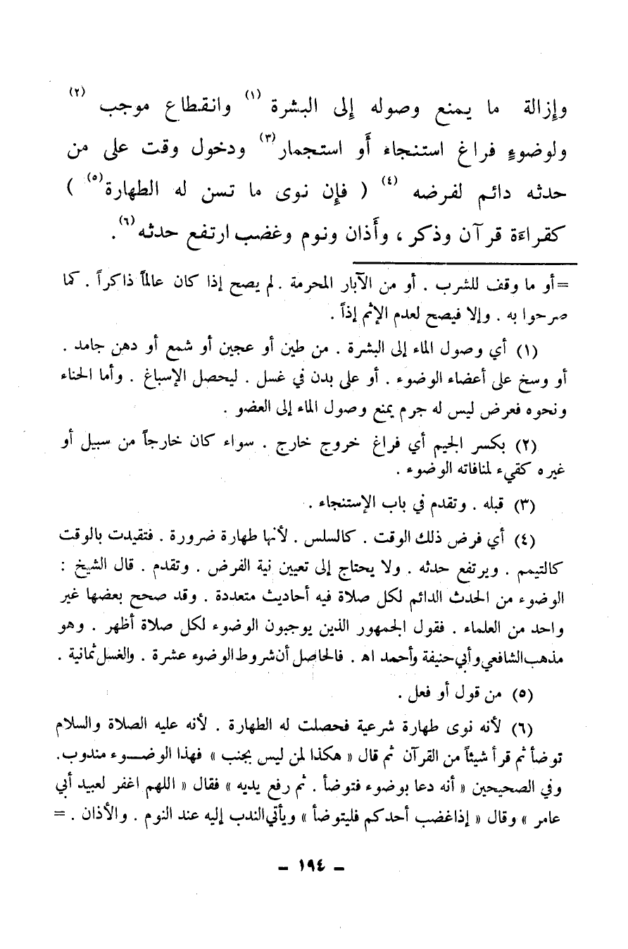 وإزالة ما يمنع وصوله إلى البشرة (¬1) وانقطاع موجب (¬2) ولوضوء فراغ استنجاء أو استجمار (¬3) ودخول وقت على من حدثه دائم لفرضه (¬4) فإن نوى ما تسن له الطهارة (¬5) كقراءة قرآن وذكر، وأذان ونوم وغضب ارتفع حدثه (¬6) .