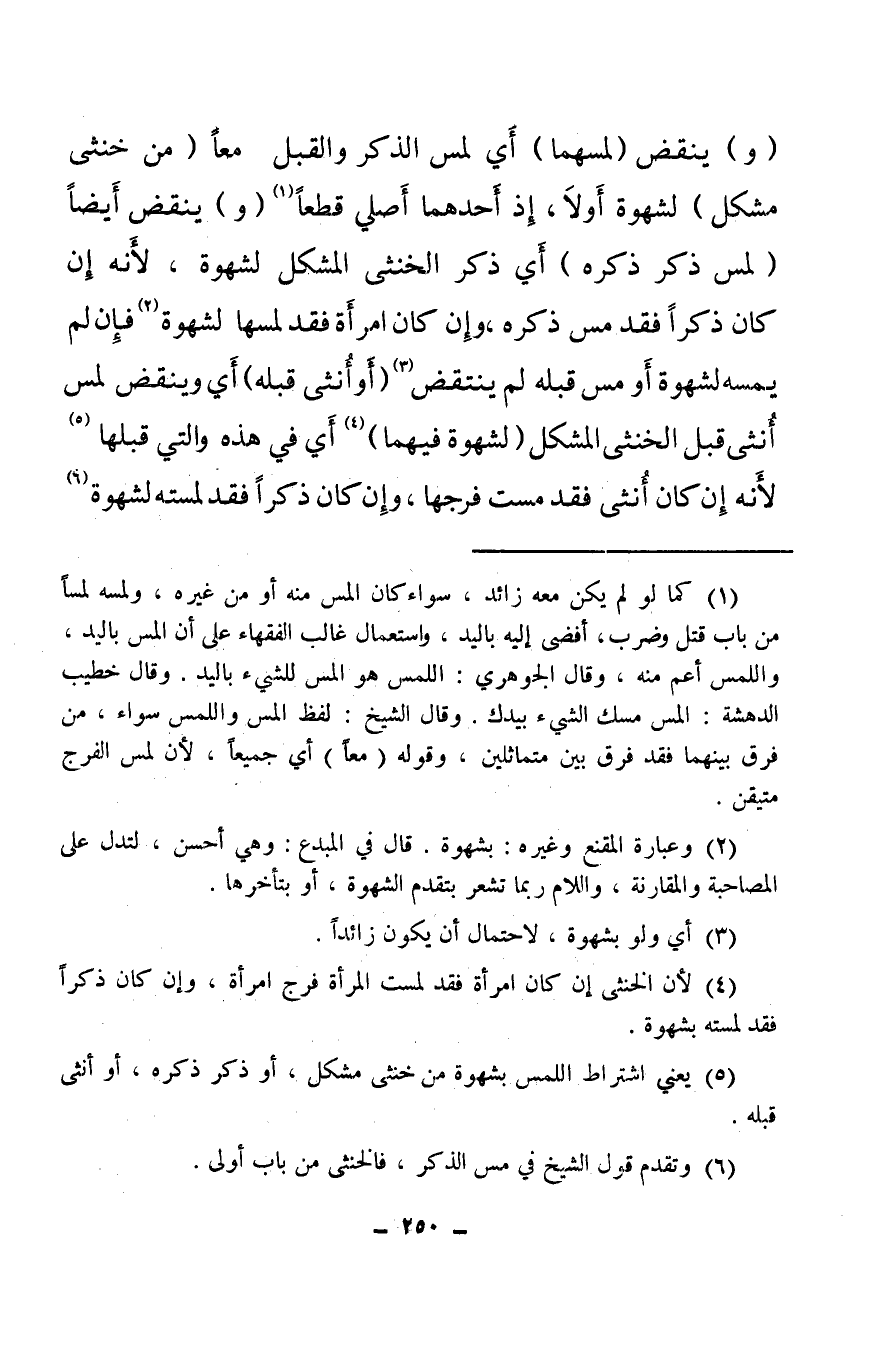 (¬5) يعني اشتراط اللمس بشهوة من خنثى مشكل، أو ذكر ذكره، أو أنثى قبله.