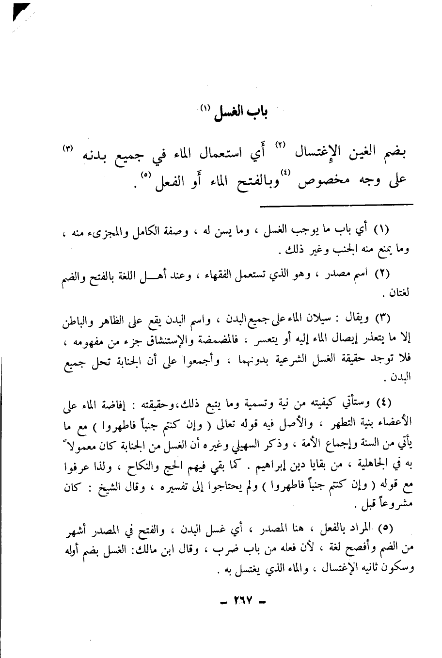 (¬5) المراد بالفعل، هنا المصدر، أي غسل البدن، والفتح في المصدر أشهر من الضم وأفصح لغة، لأن فعله من باب ضرب، وقال ابن مالك: الغسل بضم أوله وسكون ثانيه الاغتسال، والماء الذي يغتسل به.