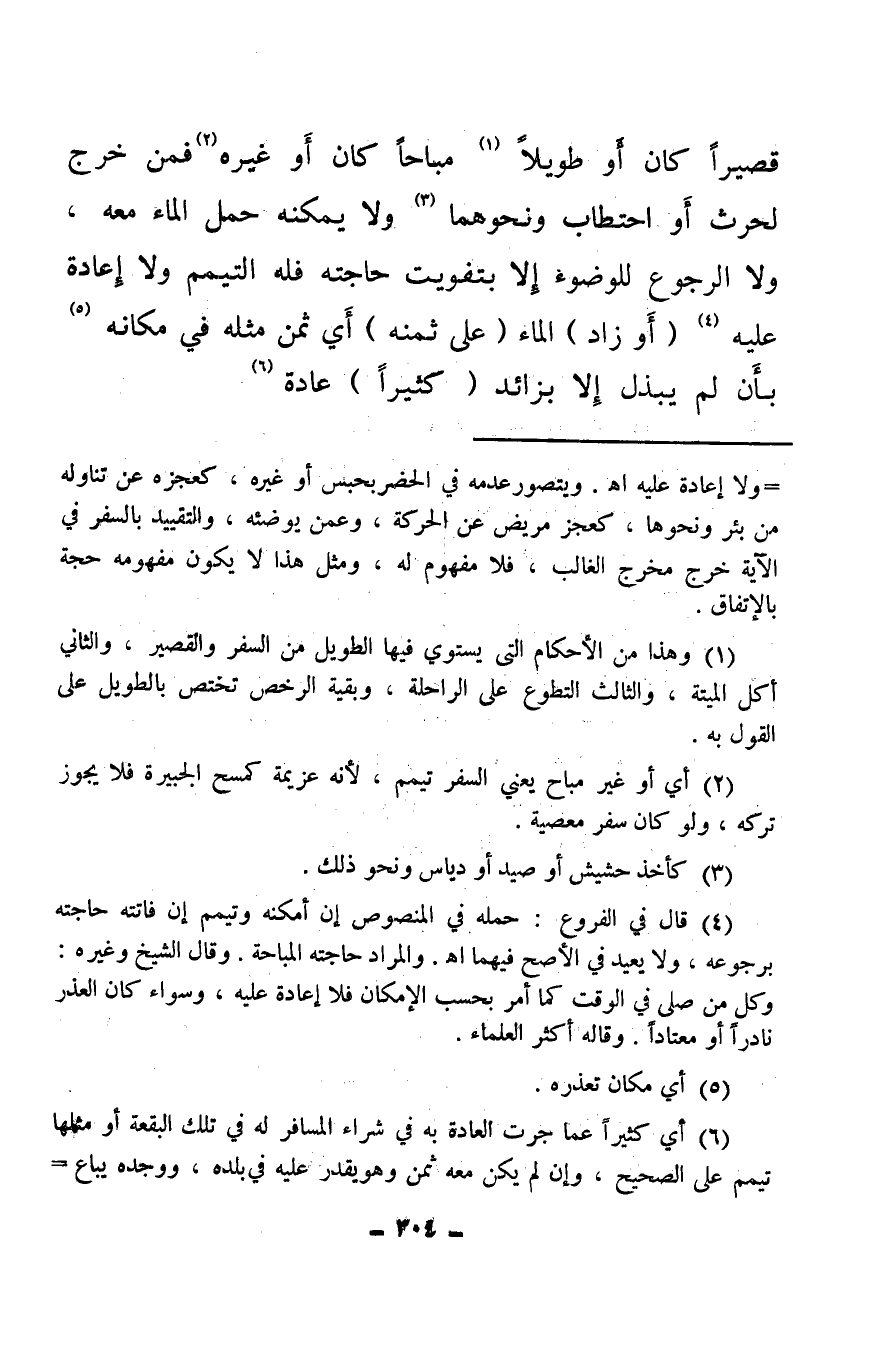 قصيرا كان أو طويلا (¬1) مباحا كان أو غيره (¬2) فمن خرج لحرث أو احتطاب ونحوهما (¬3) ولا يمكنه حمل الماء معه، ولا الرجوع للوضوء إلا بتفويت حاجته فله التيمم ولا إعادة عليه (¬4) (أو زاد) الماء (على ثمنه) أي ثمن مثله في مكانه (¬5) بأن لم يبذل إلا بزائد (كثيرا) عادة (¬6) .