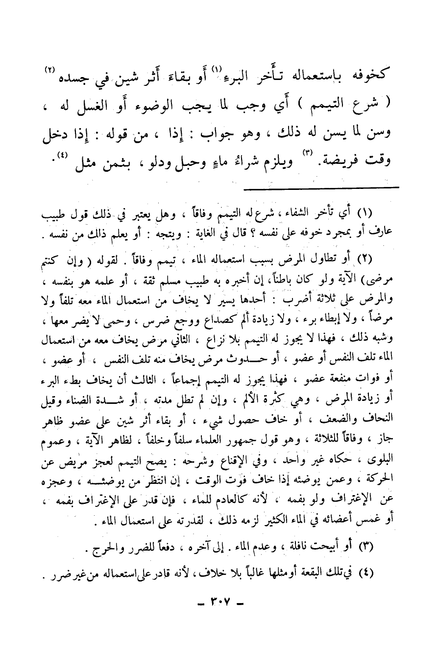 (¬1) أي تأخر الشفاء، شرع له التيمم وفاقا، وهل يعتبر في ذلك قول طبيب عارف أو بمجرد خوفه على نفسه؟ قال في الغاية: ويتجه: أو يعلم ذلك من نفسه.