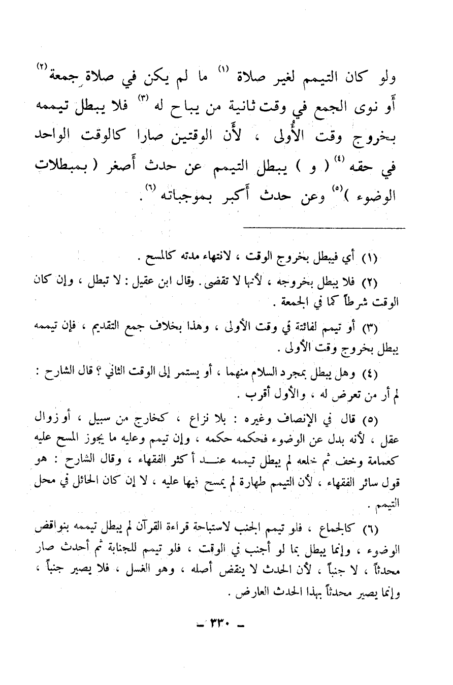 ولو كان التيمم لغير صلاة (¬1) ما لم يكن في صلاة جمعة (¬2) أو نوى الجمع في وقت ثانية من يباح له (¬3) فلا يبطل تيممه بخروج وقت الأولى، لأن الوقتين صارا كالوقت الواحد في حقه (¬4) (و) يبطل التيمم عن حدث أصغر (بمبطلات الوضوء) (¬5) وعن حدث أكبر بموجباته (¬6) .