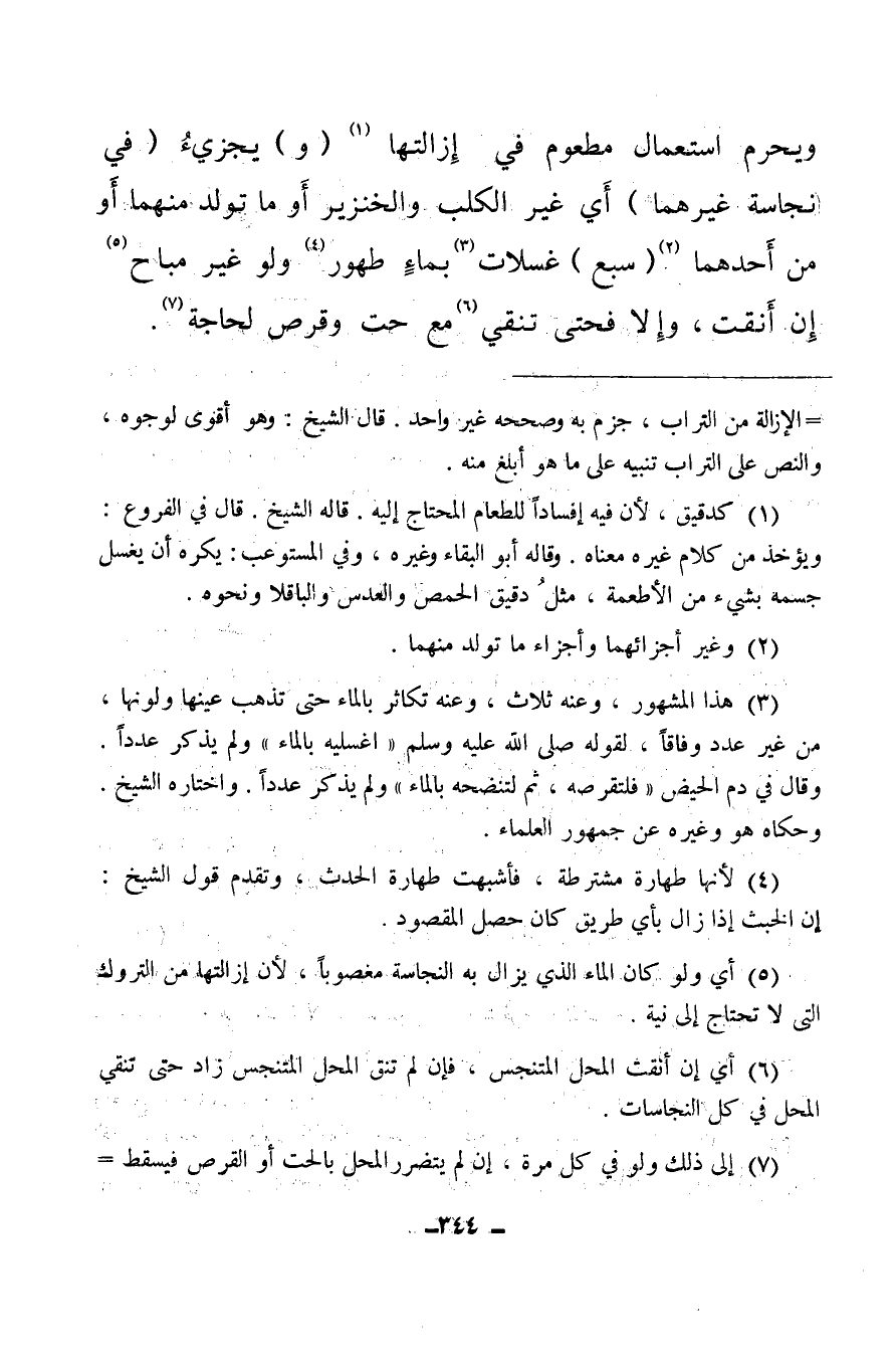 (و) يجزئ (في نجاسة غيرهما) أي غير الكلب والخنزير أو ما تولد منهما أو من أحدهما (¬2) (سبع) غسلات (¬3) بماء طهور (¬4) ولو غير مباح (¬5) إن أنقت، إلا فحتى تنقي (¬6) مع حت وقرص لحاجة (¬7) .