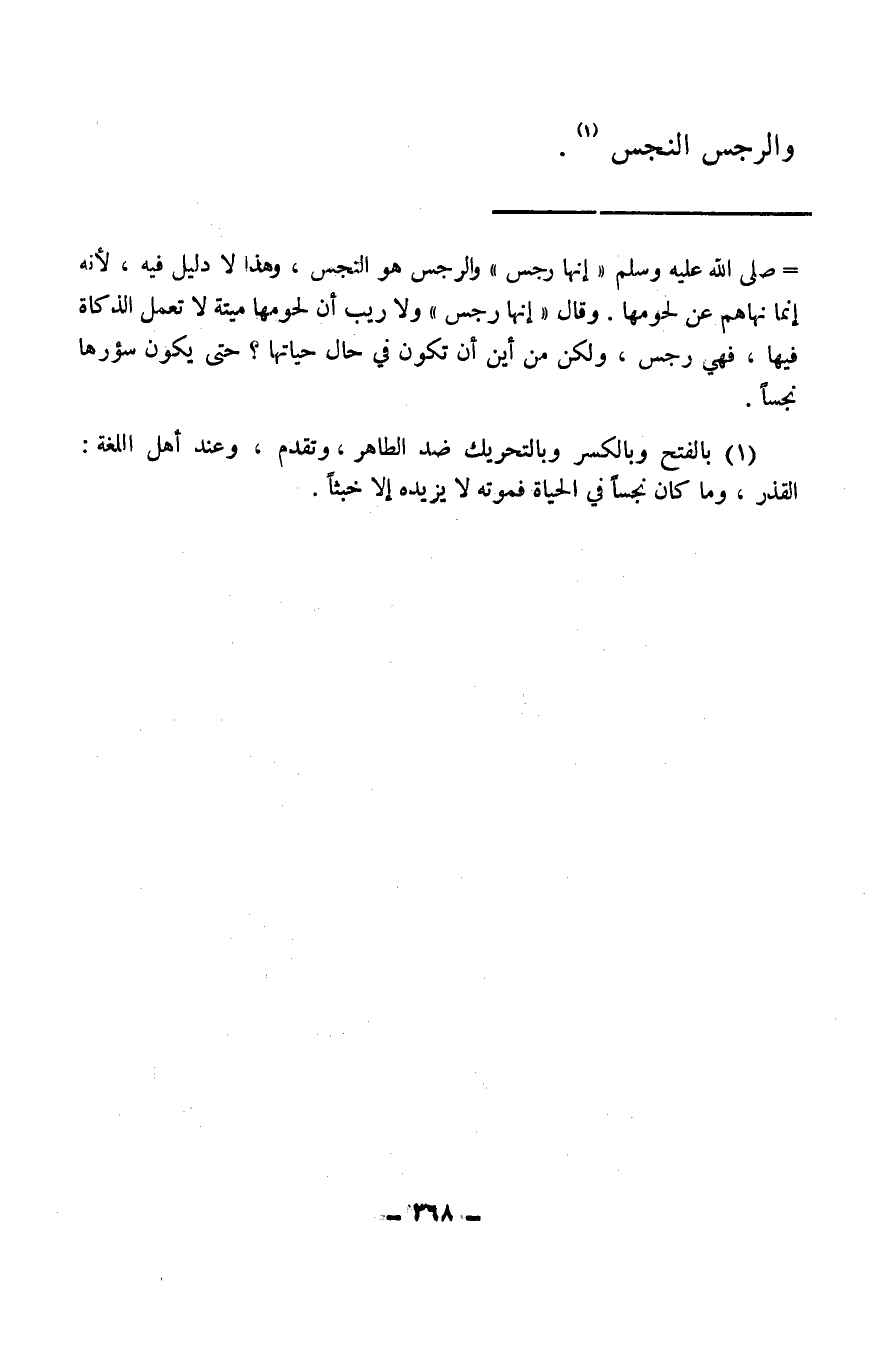 (¬1) بالفتح وبالكسر وبالتحريك ضد الطاهر، وتقدم وعند أهل اللغة: القذر، وما كان نجسا في الحياة فموته لا يزيده إلا خبثا.