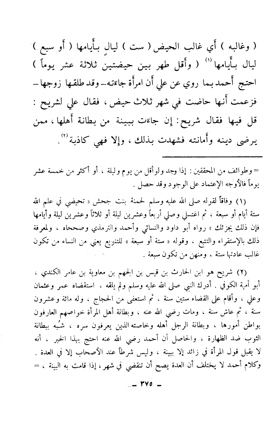 (¬2) شريح هو ابن الحارث بن قيس بن الجهم بن معاوية بن عامر الكندي، أبو أمية الكوفي. أدرك النبي صلى الله عليه وسلم ولم يلقه، استقضاه عمر وعثمان وعلي، وأقام على القضاء ستين سنة، ثم استعفى من الحجاج، وله مائة وعشرون سنة، ثم عاش سنة، ومات رضي الله عنه، وبطانة أهل المرأة خواصها العارفون بواطن أمورها، وبطانة الرجل أهله وخاصته الذين يعرفون سره، شبه ببطانة الثوب ضد الظهارة، والحاصل أن أحمد رضي الله عنه احتج بهذا الخبر، أنه لا يقبل قول المرأة في زائد إلا ببينة، وليس شرطا عند الأصحاب إلا في العدة، وكلام أحمد لا يختلف أن العدة يصح أن تنقضي في شهر، إذا قامت به البينة