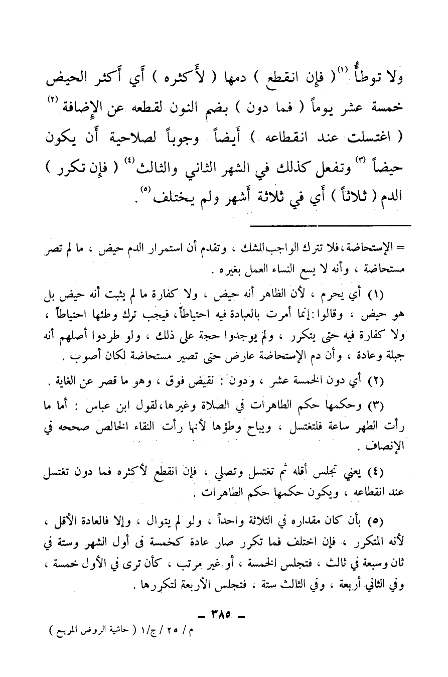 (¬4) يعني تجلس أقله ثم تغتسل وتصلي، فإن انقطع لأكثره فما دون تغتسل عند انقطاعه ويكون حكمها حكم الطاهرات.