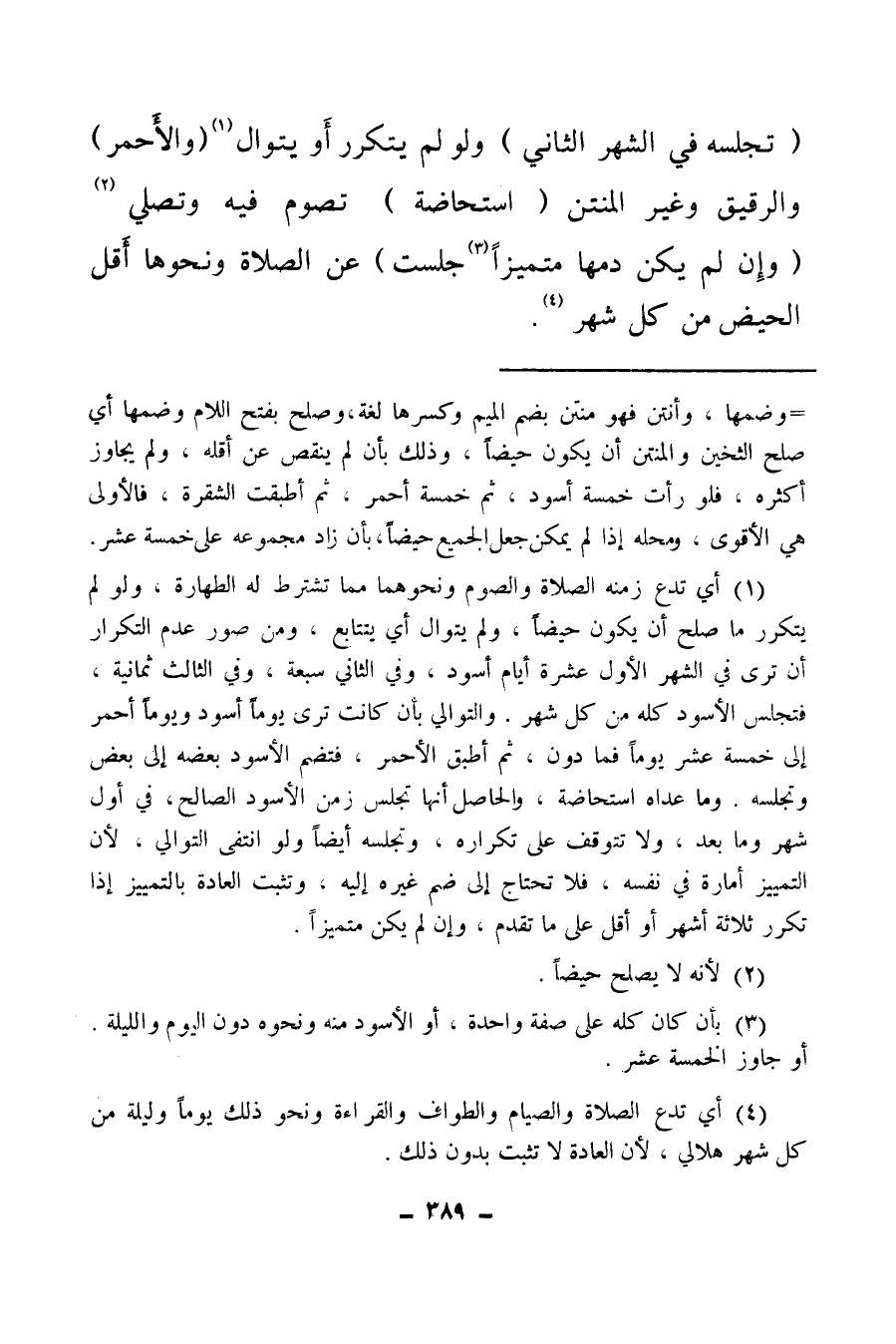 (¬4) أي تدع الصلاة والصيام والطواف والقراءة ونحو ذلك يوما وليلة من كل شهر هلالي لأن العادة لا تثبت بدون ذلك.