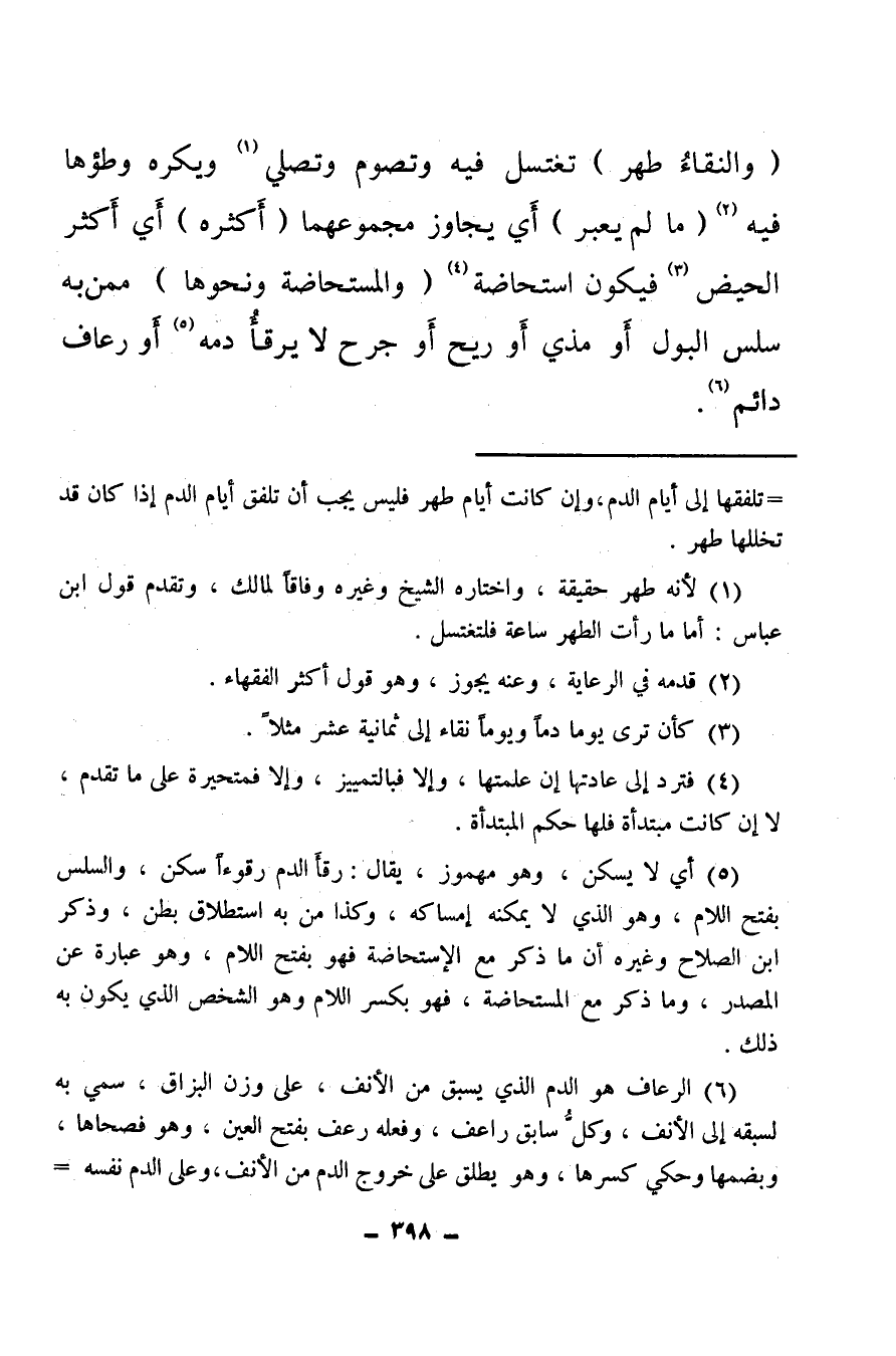 (¬6) الرعاف هو الدم الذي يسبق من الأنف، على وزن البزاق، سمي به لسبقه إلى الأنف، وكل سابق راعف، وفعله رعف بفتح العين، وهو فصحاها، وبضمها وحكي كسرها، وهو يطلق على خروج الدم من الأنف، وعلى الدم نفسه