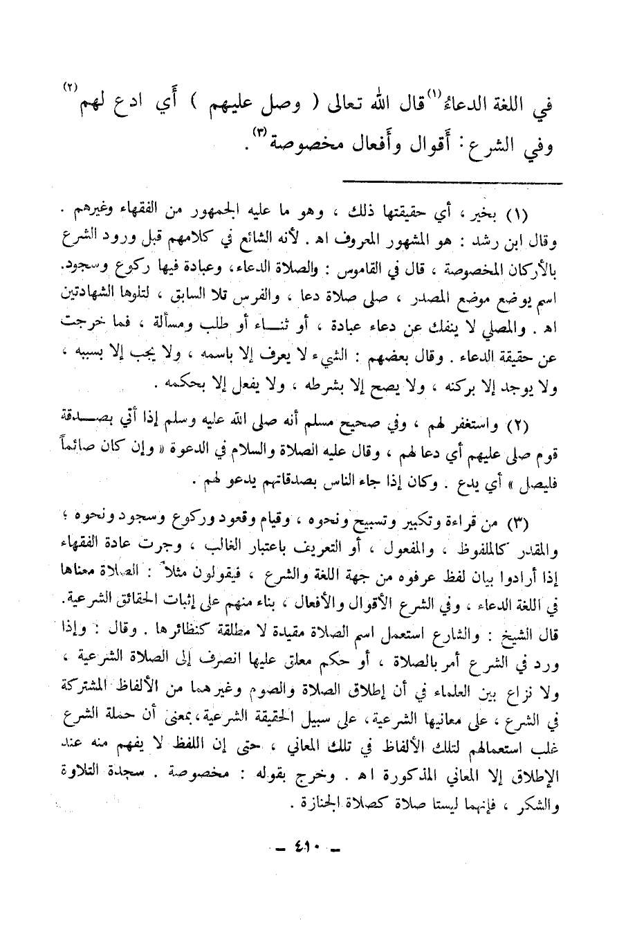 في اللغة الدعاء (¬1) قال الله تعالى: {وَصَلِّ عَلَيْهِمْ} أي ادع لهم (¬2) وفي الشرع: أقوال وأفعال مخصوصة (¬3) .