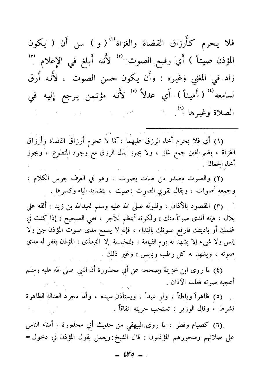 (¬4) لما روى ابن خزيمة وصححه عن أبي محذورة أن النبي صلى الله عليه وسلم أعجبه صوته فعلمه الأذان.