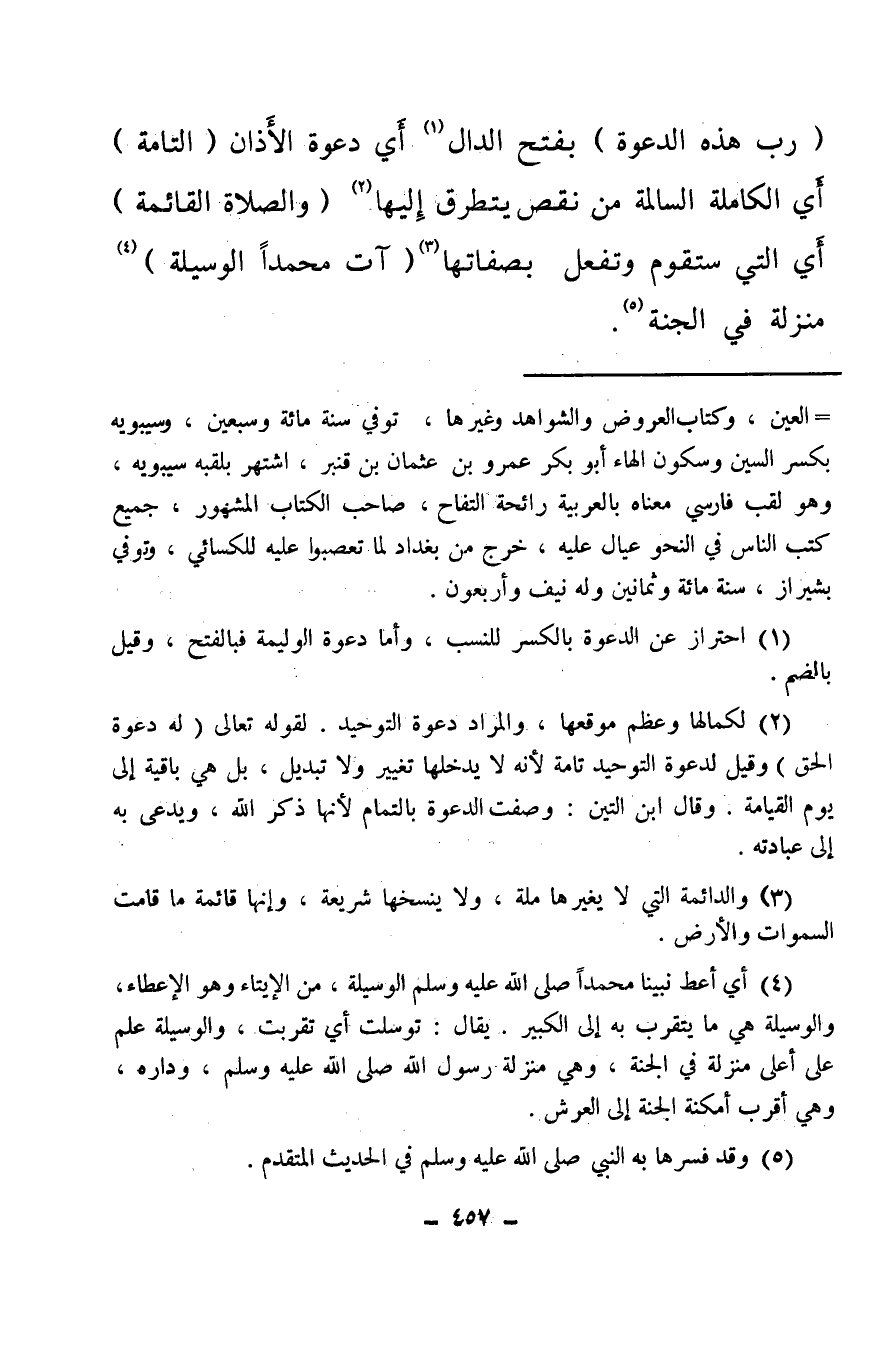 (رب هذه الدعوة) بفتح الدال (¬1) أي دعوة الأذان (التامة) أي الكاملة السالمة من نقص يتطرق إليها (¬2) (والصلاة القائمة) أي التي ستقوم وتفعل بصفاتها (¬3) (آت محمدا الوسيلة) (¬4) منزلة في الجنة (¬5) .
