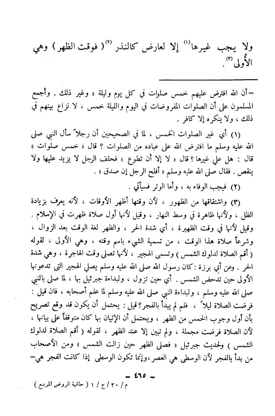(¬1) أي غير الصلوات الخمس، لما في الصحيحين أن رجلا سأل النبي صلى الله عليه وسلم ما افترض الله على عباده من الصلوات؟ قال: «خمس صلوات» قال: هل على غيرها؟ قال: «لا إلا أن تطوع» ، فحلف الرجل لا يزيد عليها ولا ينقص، فقال صلى الله عليه وسلم أفلح الرجل إن صدق.