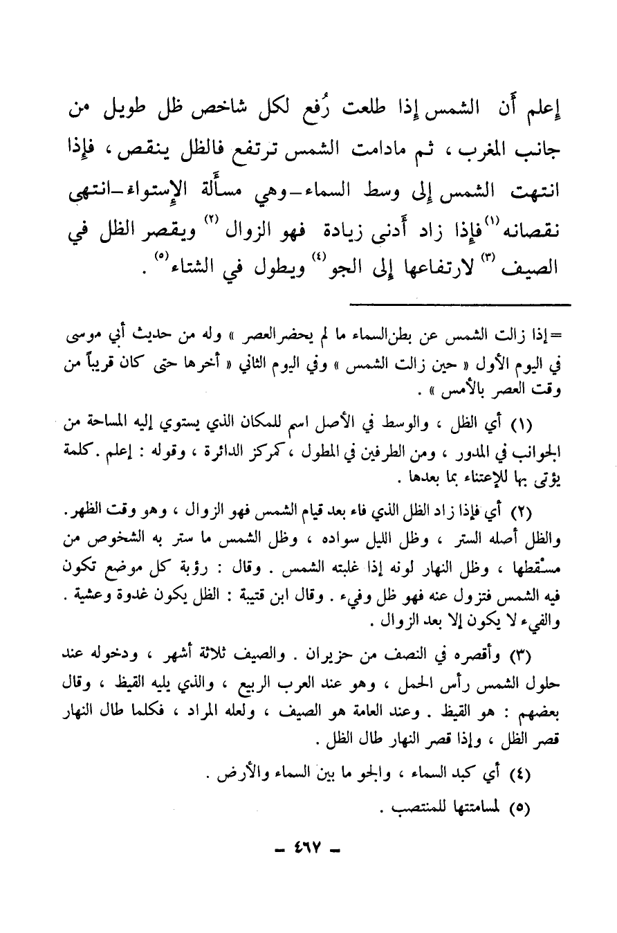(¬1) أي الظل، والوسط في الأصل اسم للمكان الذي يستوي إليه المساحة من الجوانب في المدور، ومن الطرفين في المطول، كمركز الدائرة وقوله: إعلم كلمة يؤتي بها للاعتناء بما بعدها.