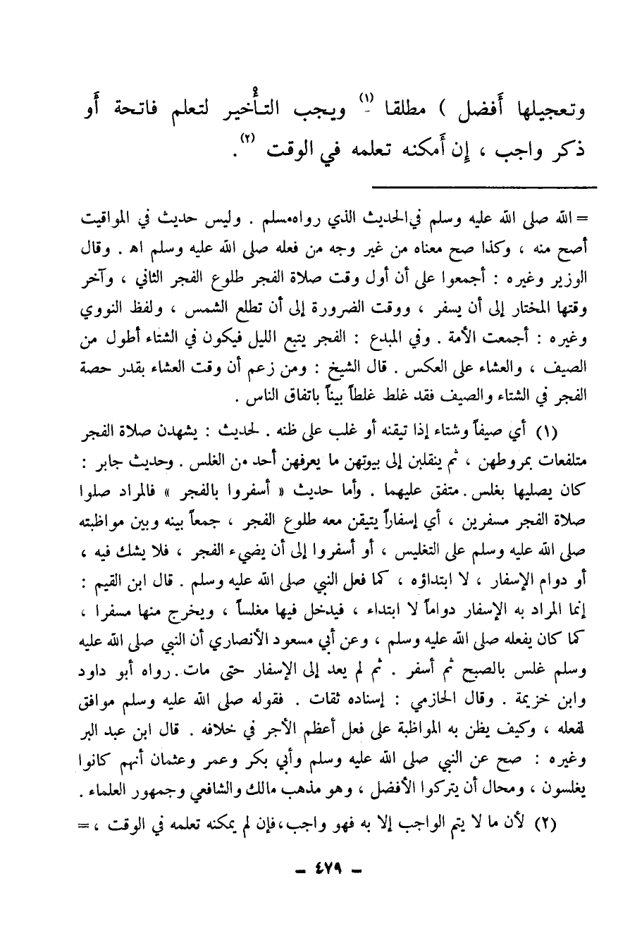(¬2) لأن ما لا يتم الواجب إلا به فهو واجب، فإن لم يمكنه تعلمه في الوقت